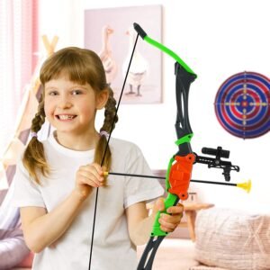 | Small Fish Archery Set for Kids | 4-12 years | Lightweight and Foldable, Non-Toxic ABS Material, Adjustable String, Laser and Point/Infrared Sight, High-quality Suction Cups, Includes 6 Arrows, 1 Bow and 2 Targets | |